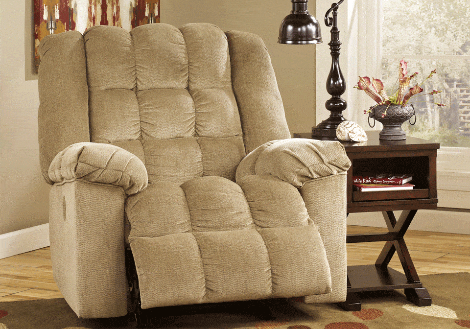 An “easy chair” that’s wonderfully easy on the body and the budget. Ludden power recliner delights the senses with ultra plush upholstery in a handsomely textured twill. Divided bustle design and puckered stitching meld comfort and style. Ample pillow top armrests make it an all-the-more restful place to unwind. And with one-touch power control