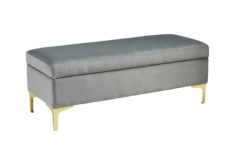 AF-A3000118-2 Published October 14, 2019 at 960 × 672 in AF-A3000118-2 modern edge is amplified with soft gray velvet fabric and swank goldtone legs. Storage function makes this more than just a fashion piece. Lift the top to quickly tuck away excess clutter. ← Previous Next →