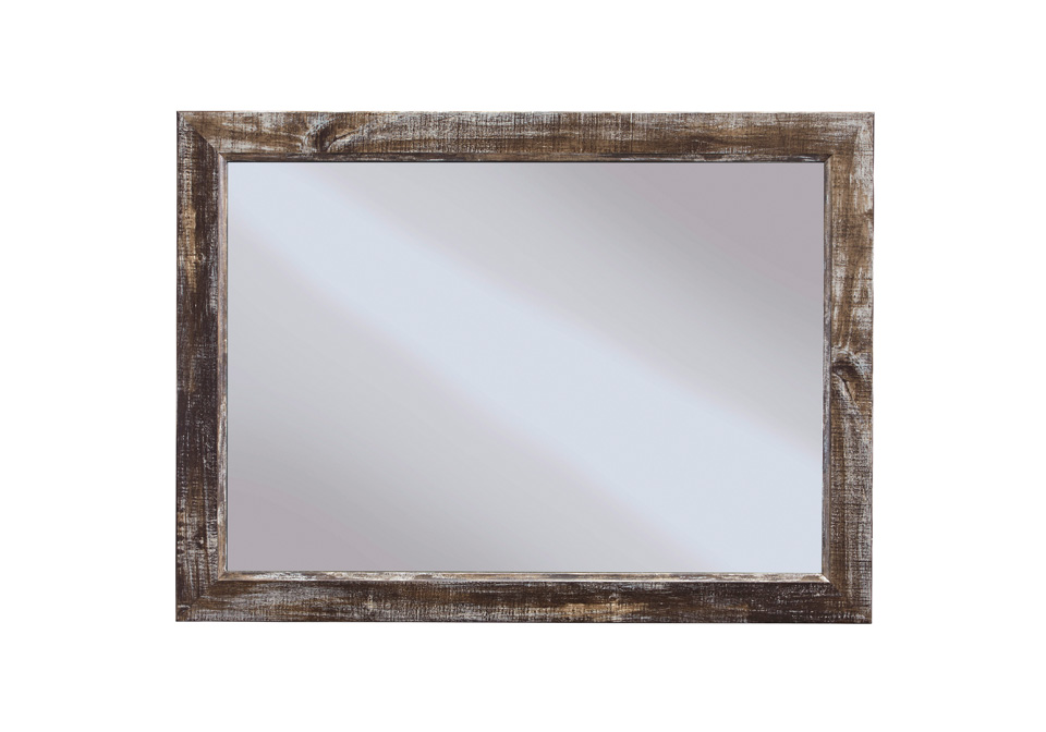 look no further than this designer mirror. It’s beautifully crafted to resemble heirloom furnishings using a weathered finish of rustic brown with a worn-through painted effect. Framed drawer fronts and large wrought-iron style hardware add dimension and authenticity. *Compatable with B297 Lynnton Dresser*