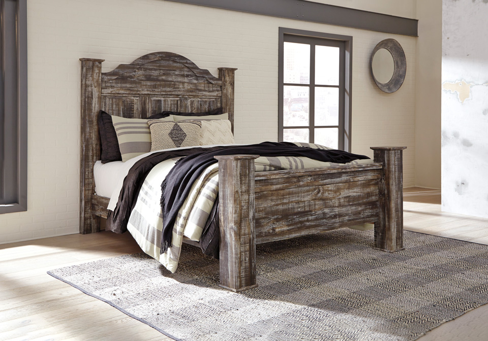 look no further than the Lynnton king poster bedroom set. It’s beautifully crafted to resemble heirloom furnishings using a weathered finish of rustic brown with a worn-through painted effect. Large wrought-iron style hardware add dimension and authenticity.