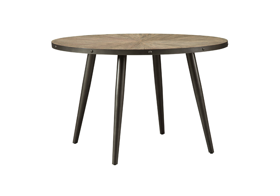 AF-D605-15-01(4)-3 Published August 20, 2019 at 960 × 672 in AF-D605-15-01(4)-3 this round dining room 5pc. table set invites you to gather round in style. Wraparound metal banding with nailhead complements this table’s canted legs so well ← Previous Next →
