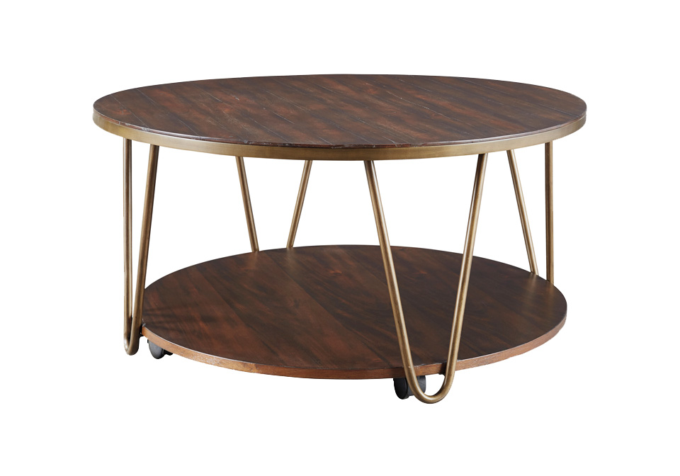 AF-T395-8-2 Published July 4, 2019 at 960 × 672 in AF-T395-8-2 this round coffee table with casters serves up a casually cool take on contemporary style. Tabletop and shelf are crafted with a unique eucalyptus veneer with warm ← Previous Next →