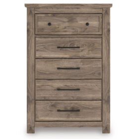 Classically chic. This chest of drawers marries traditional design with modern accents. Its deep brown finish recalls the authentic touch of hickory grain for a rich look and feel. Assorted drawers neatly store your essentials in charming fashion. Sincere in its styling, this piece sets the scene for a warm, welcoming vibe in your bedroom.