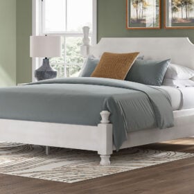 Taking a laid-back approach to casual traditional design, this artfully crafted poster Series features a handsomely hefty yet fashionably proportioned silhouette. Its rubbed antiqued white finish exudes a comfy, timeless appeal that’s sure to carry you away to a dreamy time and place. This easy-to-love look makes just the right statement.