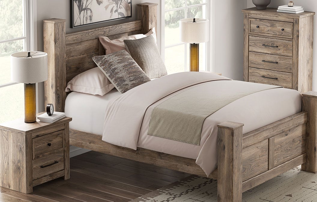 Classically chic. This poster Series marries traditional design with modern accents. Its deep brown finish recalls the authentic touch of hickory grain for a rich look and feel. Thick posts and a large-scale silhouette lend an elevated air. Sincere in its styling, this piece sets the scene for a warm, welcoming vibe in your bedroom.