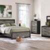 Made with engineered wood (MDF/particleboard/plywood) and decorative laminate for the right balance of affordability and durability. Two-tone finish (warm gray finish and matte black finish with replicated oak grain). Decorative laminate replicates natural or man-made material surfaces with consistent color, pattern and texture. Foundation/box spring required.