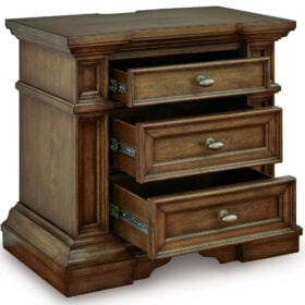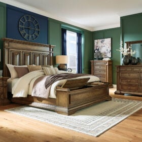 Time-honored style, made for today’s home. This panel storage Series pays homage to traditional aesthetics, with a richly detailed finish incorporating a sense of stately elegance. Included storage in the bench-style footboard adds subtle function. A substantially-scaled headboard and moulding details round out the piece in graceful fashion.