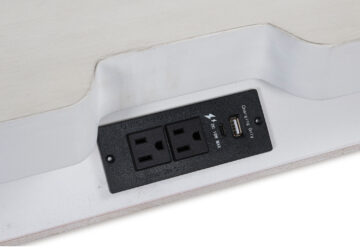 Made with hardwood solids, veneers and MDF substrates. Side rails feature laminated solid hardwood slat support rails (or LVL) with glued and screwed blocking for added strength. Rubbed antiqued white finish. Foundation/box spring required.