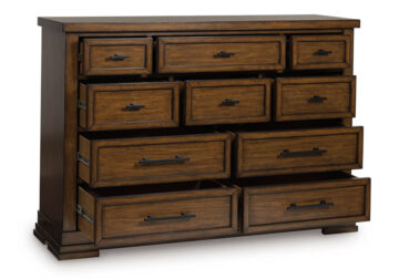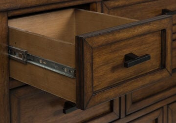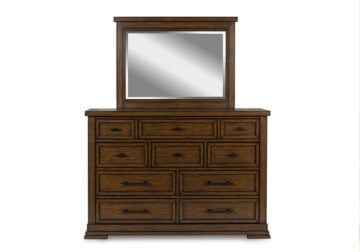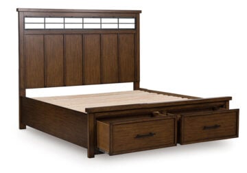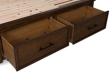 Style, simplicity and charm are hallmarks of this Series. Created with casual spaces in mind, it has the versatility to suit styles from craftsman to modern farmhouse. The rich brown finish aligns with your refined-meets-relaxed approach to everyday style. Short on storage space? Ultra-spacious under bed drawers keep extra clothes and linens neatly tucked away. And for a timeless touch, black metal fretwork on the headboard brings an inviting mixed-material feel to the overall look.