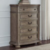 Merging traditional elegance with modern comfort, this Series takes your bedroom retreat to the next level. Serpentine curves, ash swirl veneer inlays and a glazed antiqued-look finish radiate timeless sophistication. Drawers of various sizes are packed with ample storage possibilities. Talk about stunning refinement.