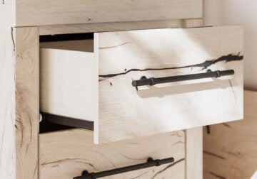 Made with engineered wood (MDF/particleboard/plywood) and decorative laminate for the right balance of affordability and durability. Rustic white finish over replicated reclaimed oak grain with authentic touch. Decorative laminate replicates natural or man-made material surfaces with consistent color, pattern and texture. Handles with dark pewter-tone finish. Drawer interiors are lined with a faux linen laminate for a clean, finished look. Framed front and pilasters. 2 slim-profile USB charging ports.