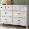 Made with hardwood solids, veneers and MDF substrates. Side rails feature laminated solid hardwood slat support rails (or LVL) with glued and screwed blocking for added strength. Rubbed antiqued white finish. Foundation/box spring required.