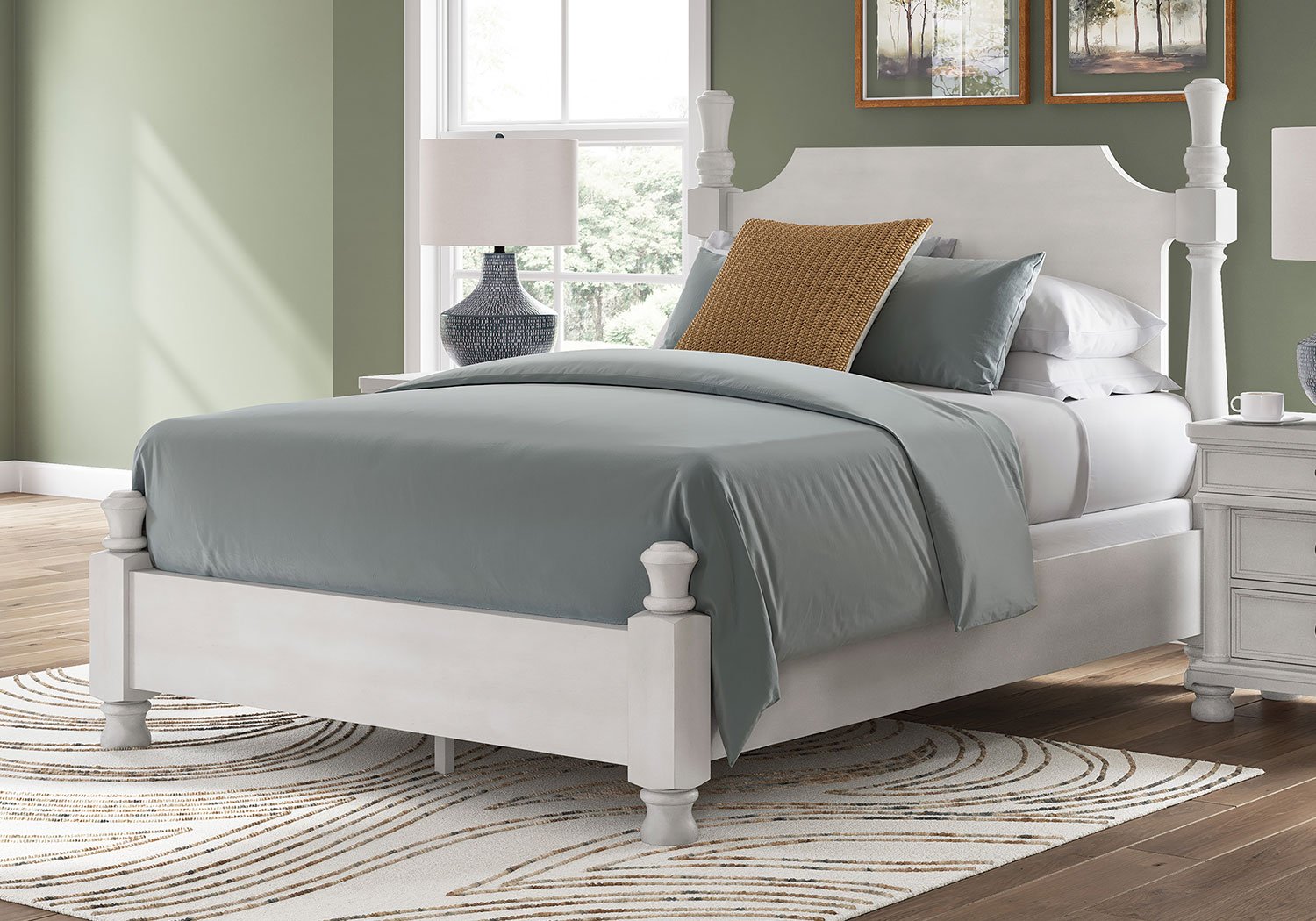 Taking a laid-back approach to casual traditional design, this artfully crafted poster Series features a handsomely hefty yet fashionably proportioned silhouette. Its rubbed antiqued white finish exudes a comfy, timeless appeal that’s sure to carry you away to a dreamy time and place. This easy-to-love look makes just the right statement.
