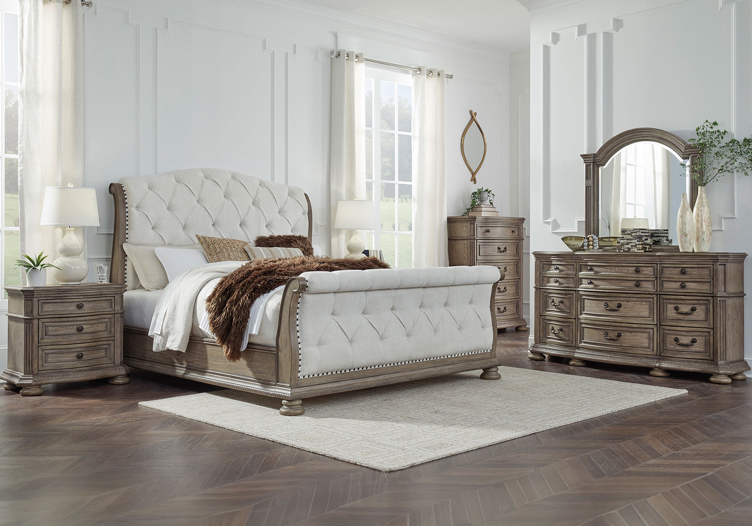 Ardenfield Light Brown Queen Upholstered Sleigh Bed Set