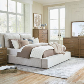 This upholstered Series sits comfortably at the intersection of modern lodge and farmhouse aesthetics. Your warm and welcoming disposition is reflected in its subtly tapered headboard and all-over upholstery. Even with its poise, the bed remains practical. Loose pillows on the headboard keep comfort a priority as you lay back to read or watch TV, defining your bedroom with reliable function and style.
