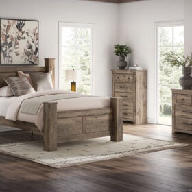 Classically chic. This poster Series marries traditional design with modern accents. Its deep brown finish recalls the authentic touch of hickory grain for a rich look and feel. Thick posts and a large-scale silhouette lend an elevated air. Sincere in its styling, this piece sets the scene for a warm, welcoming vibe in your bedroom.