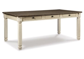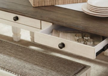 Enjoy beautiful cottage style in the classic Bolanburg farmhouse dining set. With a rustic planked top and six convenient drawers, this table serves up casual with a vintage twist. The gently distressed tabletop creates the perfect spot for an impromptu gathering, with no need to head to the linen closet for extra place settings. Keep placemats, napkins and utensils on hand in the table’s six built-in drawers—very practical for any living space.