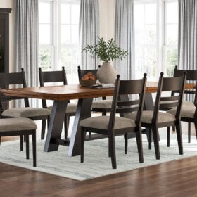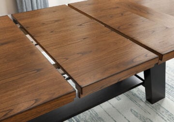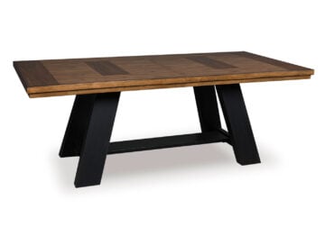 Relaxed living and cozy comfort—that’s what modern farmhouse design is all about. And what better way to embrace your love of rustic country style than with this two-tone dining extension table. Celebrating the beauty of simplicity, its chunky wood veneer inlay top and painted black base marry functionality with classic appeal for a fresh feel. This piece effortlessly pairs with assorted chairs in the collection for an eclectic look.