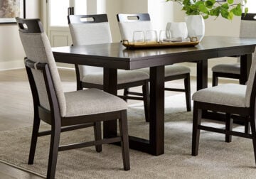 This extension dining Series is a perfect blend of modern and contemporary styles. Its solid construction and self-storing leaf make it both durable and accommodating. Its easy-clean Next-Gen Nuvella™ upholstery remains vibrant and resists stains, while a fun and functional peek-a-boo handle keeps it relevant and on trend. Incorporating high style and versatility, this is a piece you’ll enjoy for years.