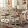 You love a clean and contemporary look—so long as it’s warm and inviting. With that in mind, the Rokane dining table set serves your sense of style beautifully. “Rough sawn” style finish with a hint of weathered charm tantalizes with a mood of relaxed elegance. Sumptuously upholstered seats in a neutral, textural fabric make the experience complete.