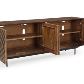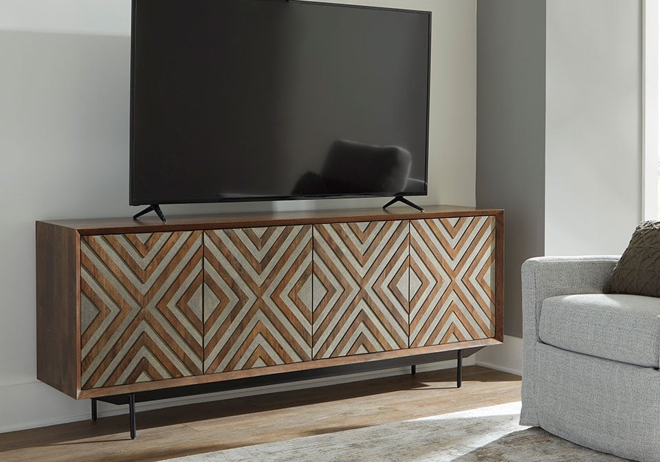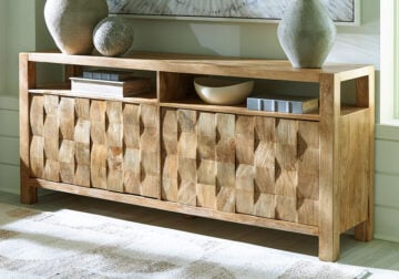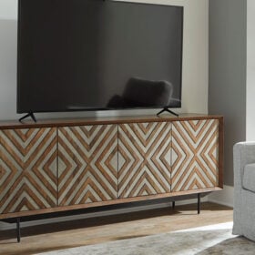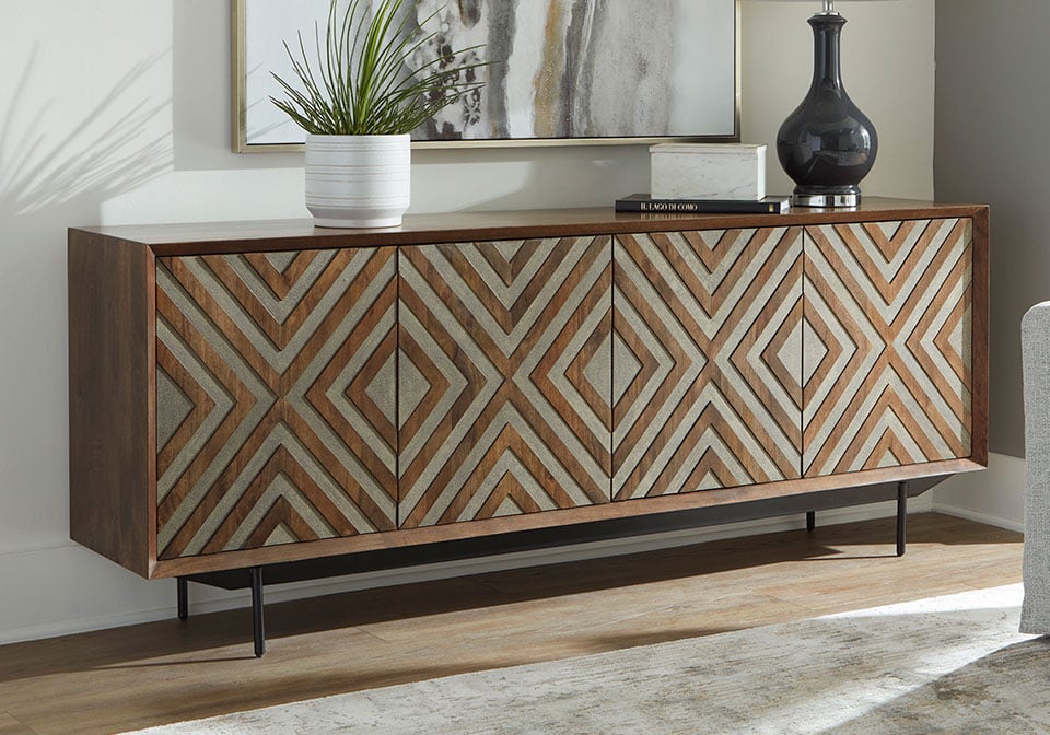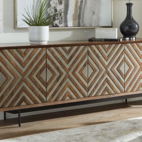 If you’re looking for a cool accent piece loaded with character, then you’ll want to carve out some space for this accent cabinet. Fabulous push magnet doors wow with their carved diamond design, while two interior shelves accommodate your storage needs. What a perfect way to mix an exotic element with your decor.