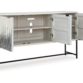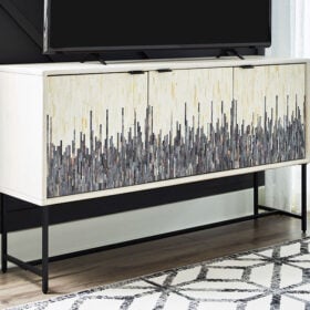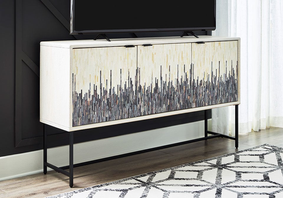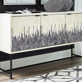 Looking for a showstopping accent for your home? This accent cabinet combines fashion and function in an exclusive way. It offers a creative take on a traditional cabinet, with a strip pattern in white, gray and black. Inside the doors, two shelves suit all your storage needs. Redefine your modern decor with this one-of-a-kind piece.