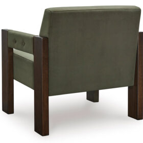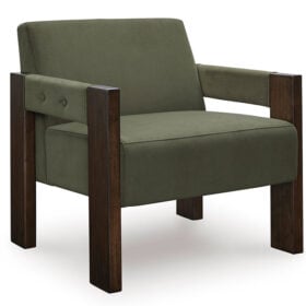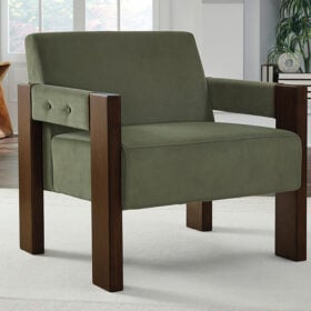Get your modern sophistication on with this chic accent chair. Its rich olive green velvet upholstery is both luxurious and inviting, while an espresso-finished wood frame provides a warm, grounding element. The chair’s clean lines and minimalist design make it a versatile piece that complements a variety of decor styles.
