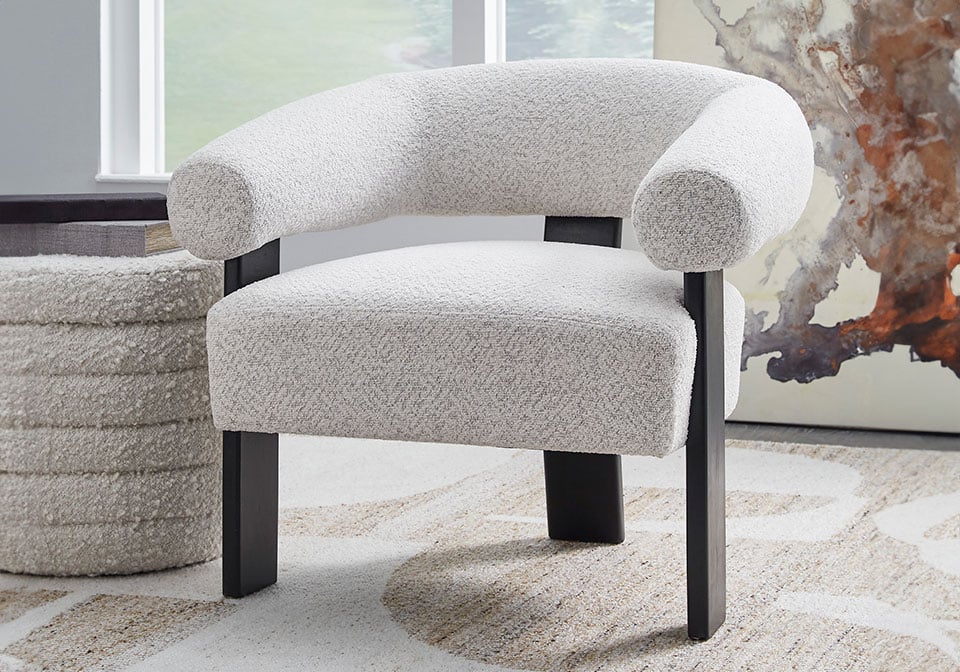Almost sculptural in design, this accent chair is a standout addition to your seating area. Its artistic form speaks to your eye for unique contemporary design, while the ultra-soft fabric encourages an indulgent lounging experience. In contrasting black and white hues, the trend-forward chair can coexist expertly with existing pieces. Now that’s style to aspire to.