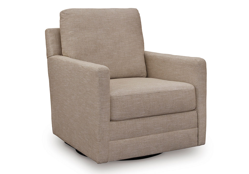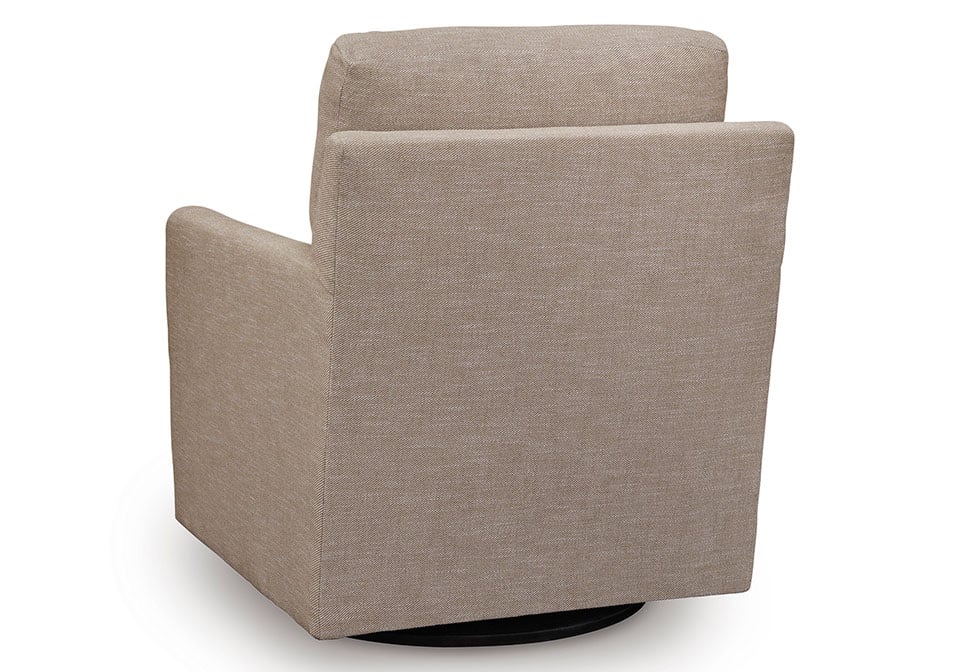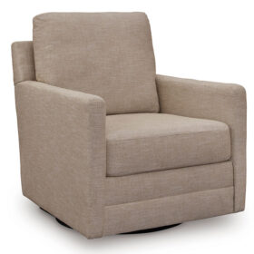 Your love for low-maintenance lounging can take an unexpected turn with this Next-Gen Nuvella™ swivel accent chair. Upkeep is a breeze thanks to its stain-resistant performance fabric. The soothing neutral upholstery blends easily with your other decor, while a smooth 360-degree swivel is form and function at its finest.