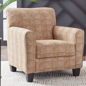 Add visual variation to your contemporary hideaway with this accent chair. Its geometric upholstery caps off your aesthetic with a welcome pop of pattern. In warmly neutral hues, the eye-catching chair stays versatile enough to pair with existing pieces. Stage it with another chair to create a cozy-chic conversation area, or tuck it in a corner for a stylish spot to rest and relax solo.