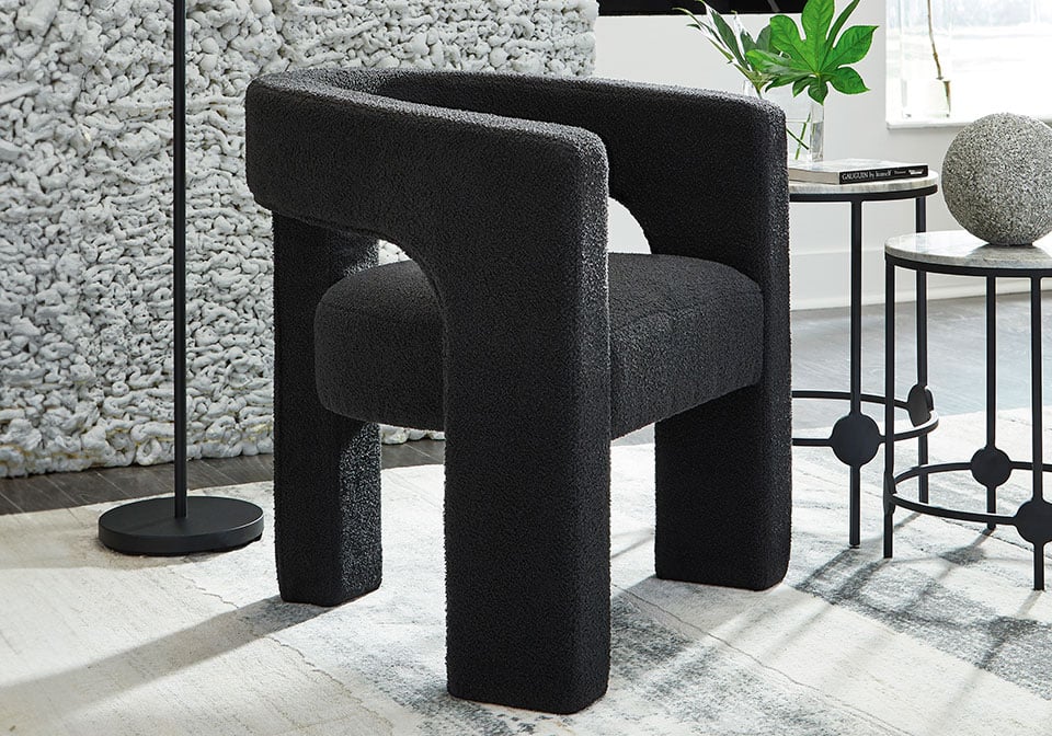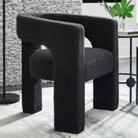 With its sculptural silhouette and barrel-back design, this accent chair exudes runway-inspired style. Peek-a-boo styling and decadent boucle upholstery combine both fashion and comfort seamlessly. Who says cutouts are just for your wardrobe?