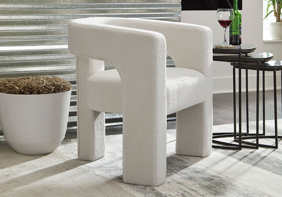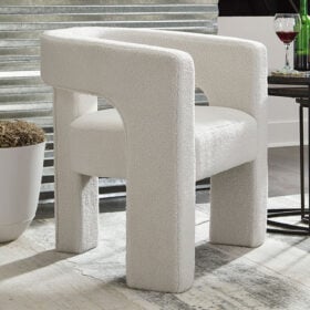 With a sculptural silhouette and barrel-back design, this accent chair exudes runway-inspired style. Its peek-a-boo styling and decadent boucle upholstery combine both fashion and comfort seamlessly. Who says cutouts are just for your wardrobe?