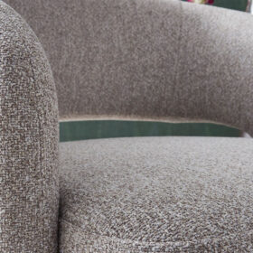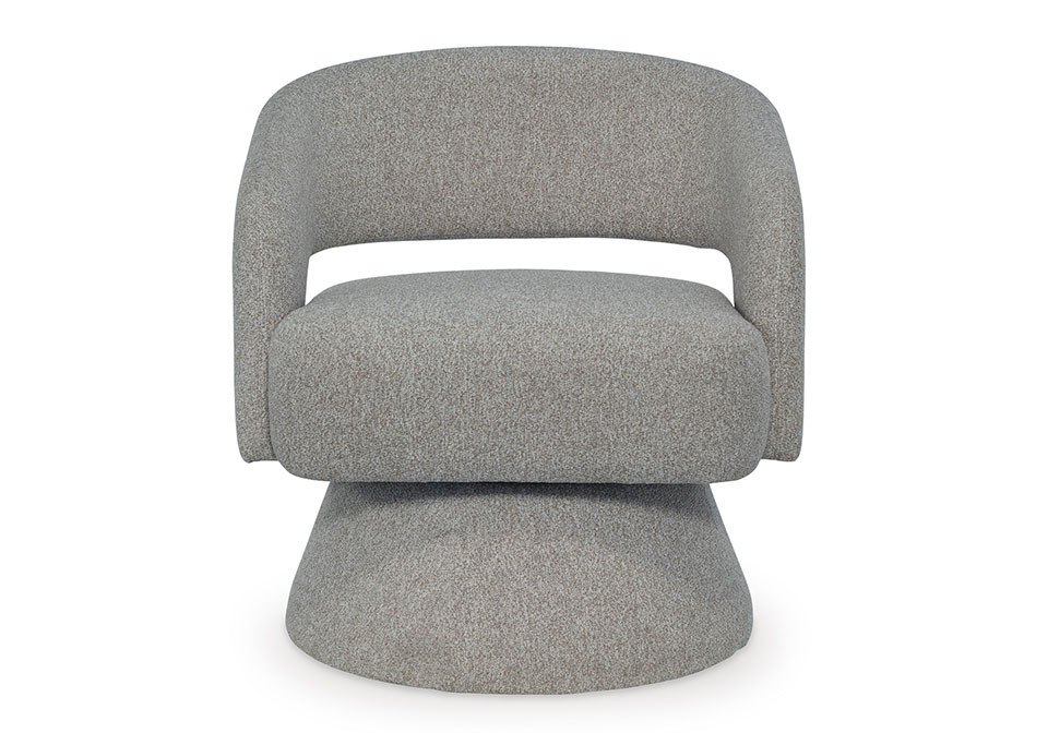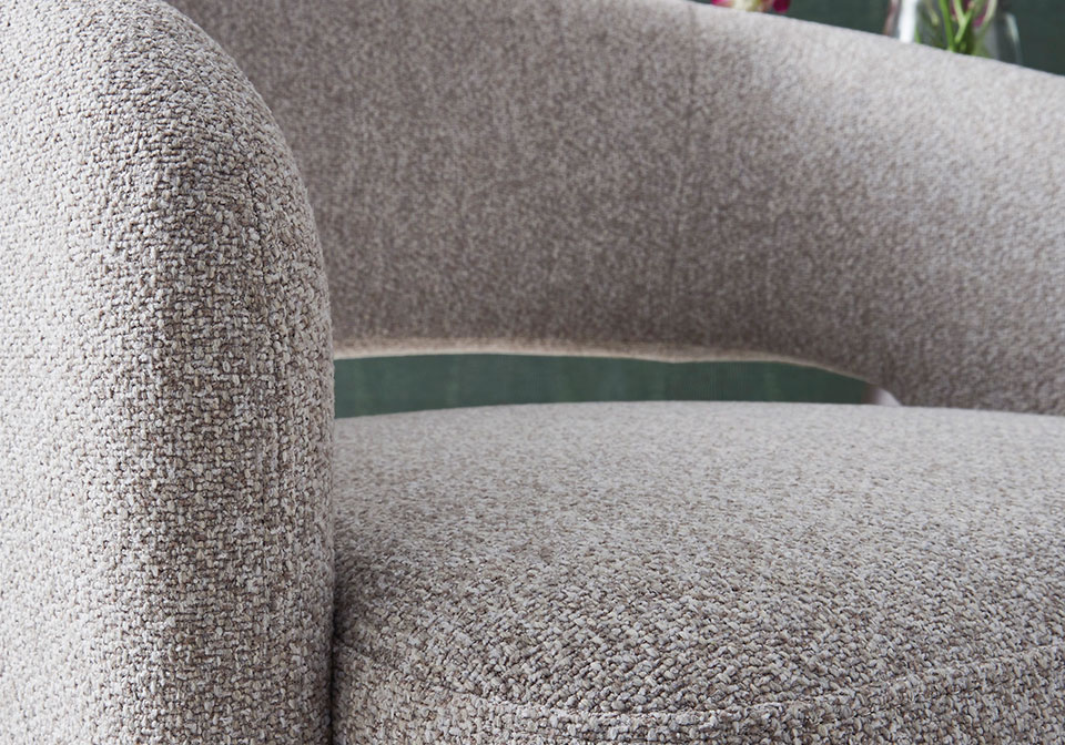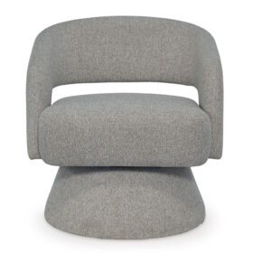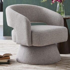 Indulge in the luxurious comfort and effortless style of this swivel accent chair. Its fine boucle upholstery and open barrel back create a chic and inviting look. And the 360-degree swivel base adds function to all that fabulous form.