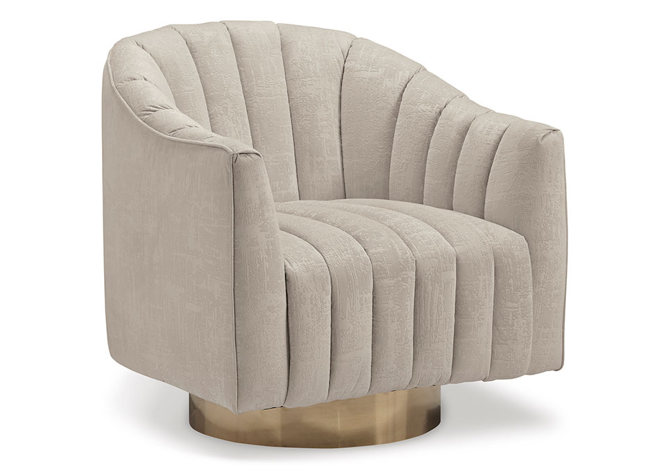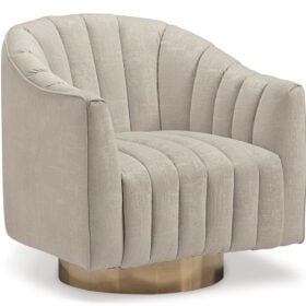 Textured velvet gets a contemporary edge in this swivel accent chair. Neutral enough to fit into any space, the subtle design of the upholstery brings modern style to the surface.