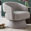 Relaxation meets refinement in this accent chair. With an ultra-soft fabric in a crisp, light neutral, it invites you to curl up in comfort. A 360-degree swivel provides added versatility. Drape a throw blanket over the back, or add an accent pillow for a pop of color—with this chair, the possibilities for cozy-contemporary style are endless.