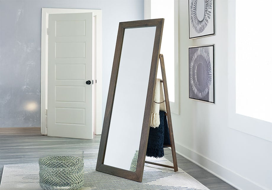 - Freestanding mirror; no hanging hardware