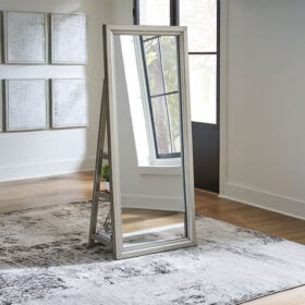 This floor mirror with storage makes on-the-go glam effortless. Complete outfits with accessories in an instant—thanks to easy-to-access shelving on the back, you can keep all your favorites on hand. And sleek LED lighting around the frame makes last-minute makeup touchups easy. With its contemporary styling, this mirror helps you look your best while keeping your home right on trend.