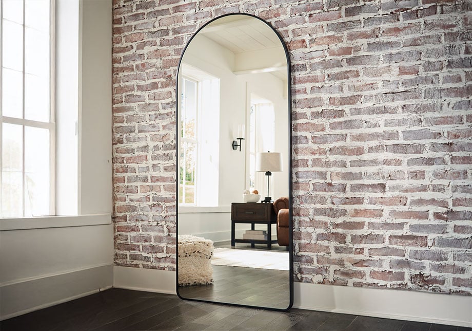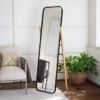 Beauty reflects in contemporary style with this floor mirror. Its black-finished metal creates a lovely curved frame. Standing almost six feet high, this mirror makes a case for statement style.