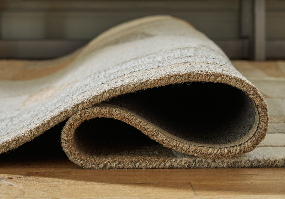 Abstract imagery and a medley of neutral tones give this rug loads of visual interest and a lot of versatility. The hand-tufted pile is rich with feel-good texture. Be it in casual gathering places or formal spaces, it has a look that feels right at home.