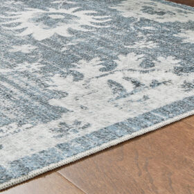 In spaces from coastal to boho, this area rug sets the scene for relaxed, carefree style. Its botanical design, infused with a soothing muted palette of blue, gray and ivory, exudes a calming vibe. And when life gets messy, this rug is machine washable for easy care.