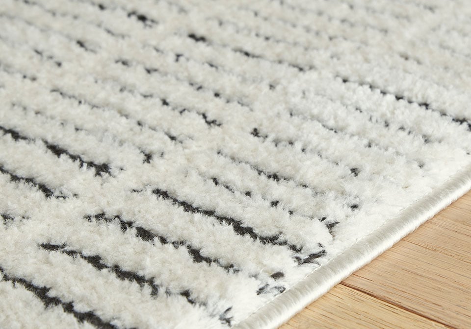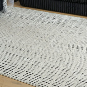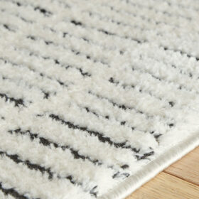 This area rug delivers a clean, modern touch to your home. Its striking stripe design provides plush comfort underfoot, while neutral hues make it a welcome addition anywhere and everywhere.