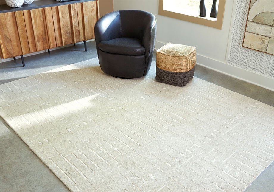 Ground your space in serene style with the abstract flair of this area rug. Its simple hand tufted design has an abstract flair, incorporating a subtle pop of pattern underfoot. With invitingly warm neutral hues, this rug can pair with a variety of color palettes.