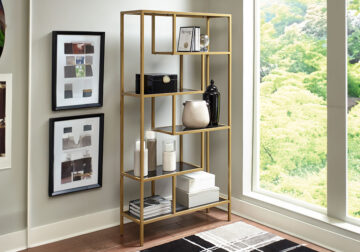 Shelfs are made with Acacia veneer and hardwood solids rendered in an oiled walnut coloration for a deep woody finish. Frames made with tubular steel with clean modern styling and finished in a blackened gun metal.
