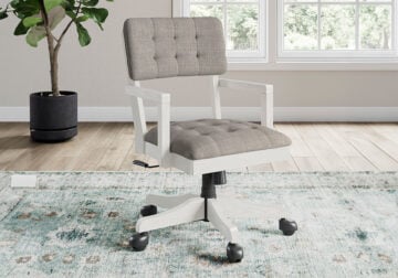 Raise the bar on modern farmhouse style with this home office chair. Its casual good looks are accentuated with a comfortably cushioned seat and warm satin black finish. And it swivels, rolls and adjusts so you can remain a mobile multitasker. Whether your style is vintage, country or eclectic, this richly crafted chair adds a hearty element.