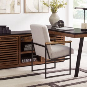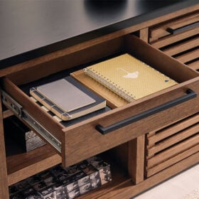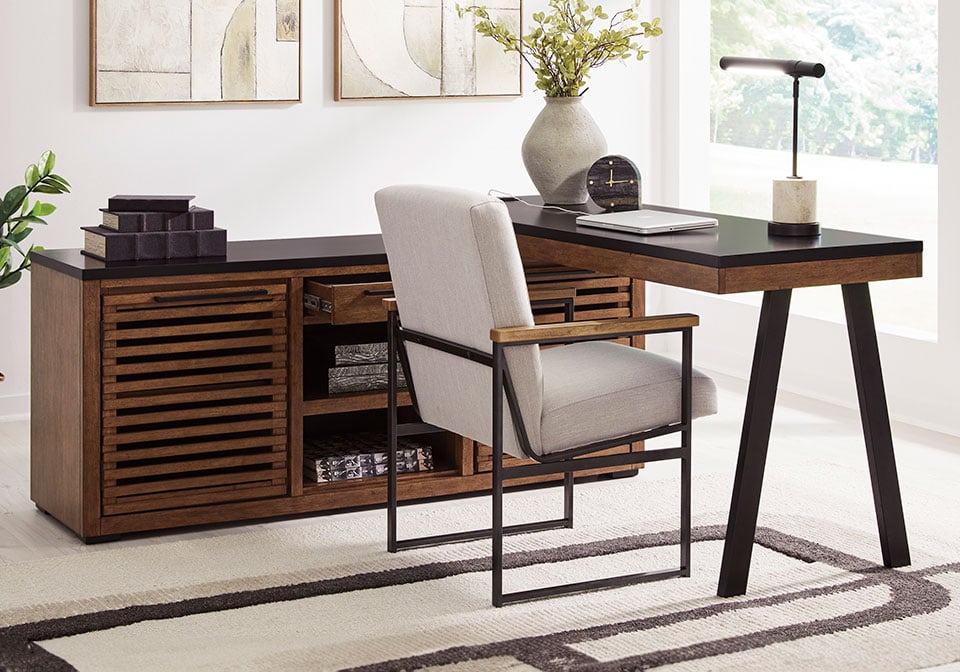 This home office desk return is made with hardwood solids, mango wood veneer and MDF substrates. Pairs with other items to make a credenza with desk return.
