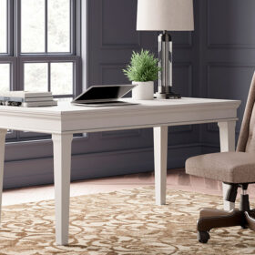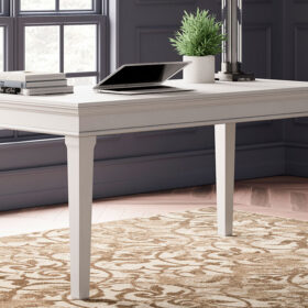 Make a style statement with this home office desk. Its traditional design is updated with an on trend distressed whitewash finish. The desk’s large tabletop makes for a well-organized workspace.