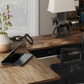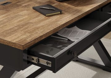 This home office desk return is made with hardwood solids, mango wood veneer and MDF substrates. Pairs with other items in the series to make a desk kit.