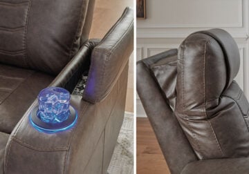 Elevate your movie nights with this power recliner. Its adjustable headrest ensures a perfect view of the TV no matter how far back you recline, and the extended ottoman offers extra space for maximum comfort. Stylish stitching and ambient LED lighting create a theater-style experience. Sit back, relax, and enjoy the show in complete comfort.