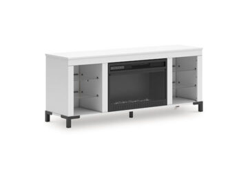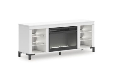 Level up your gaming experience and make movie nights to remember. This TV stand with electric fireplace extends your entertainment beyond the screen. Its built-in fireplace brings the heat, synchronizing with LED backlighting on the shelves. And you can customize the vibe with three trendy color options: blue, white and red. Modern function. Captivating, cool style. With this TV stand, revamp your home’s recreational hub like never before.