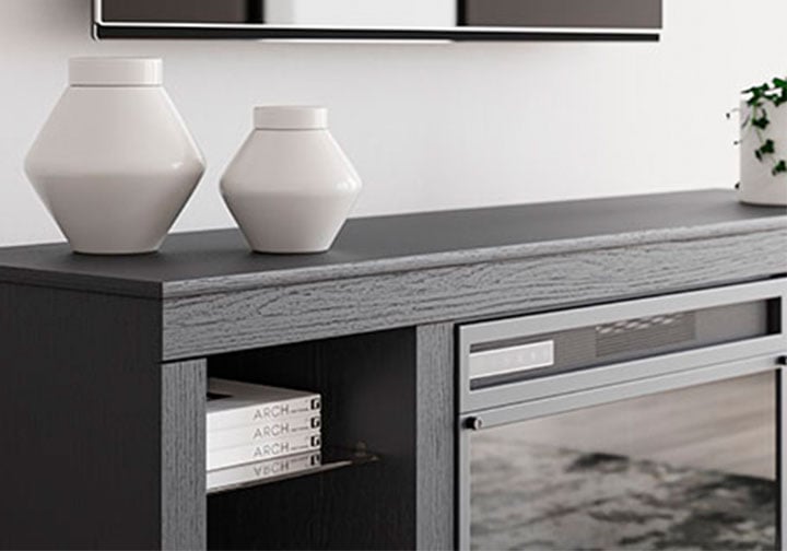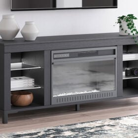 Level up your gaming experience and make movie nights to remember. This TV stand with electric fireplace extends your entertainment beyond the screen. Its built-in fireplace brings the heat, synchronizing with LED backlighting on the shelves. And you can customize the vibe with trendy color options: red, green, blue and magenta. Modern function. Captivating, cool style. With this TV stand, revamp your home’s recreational hub like never before.